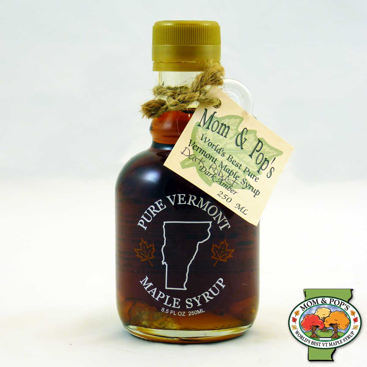 250 mL (8.5 oz) glass jug filled with Vermont maple syrup.