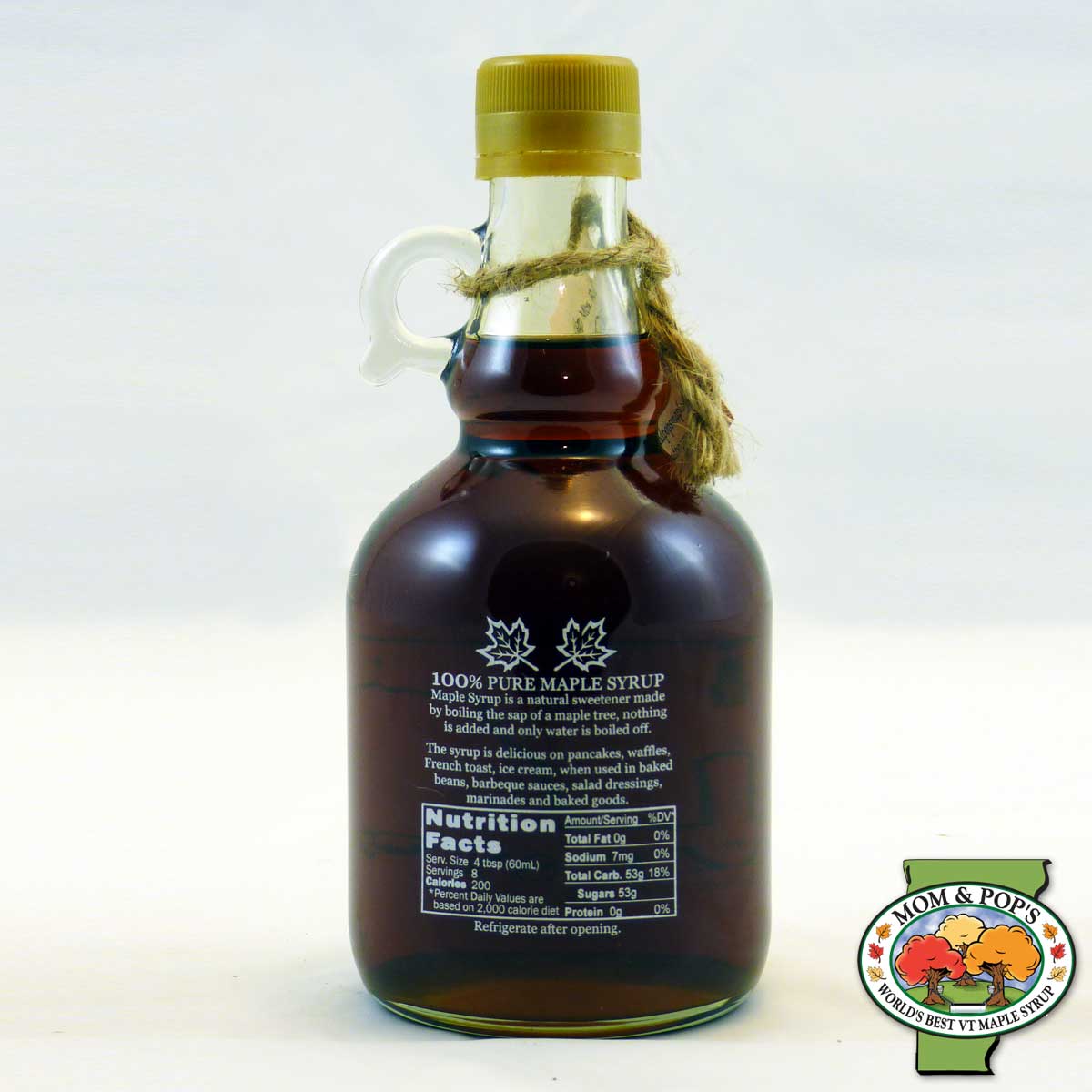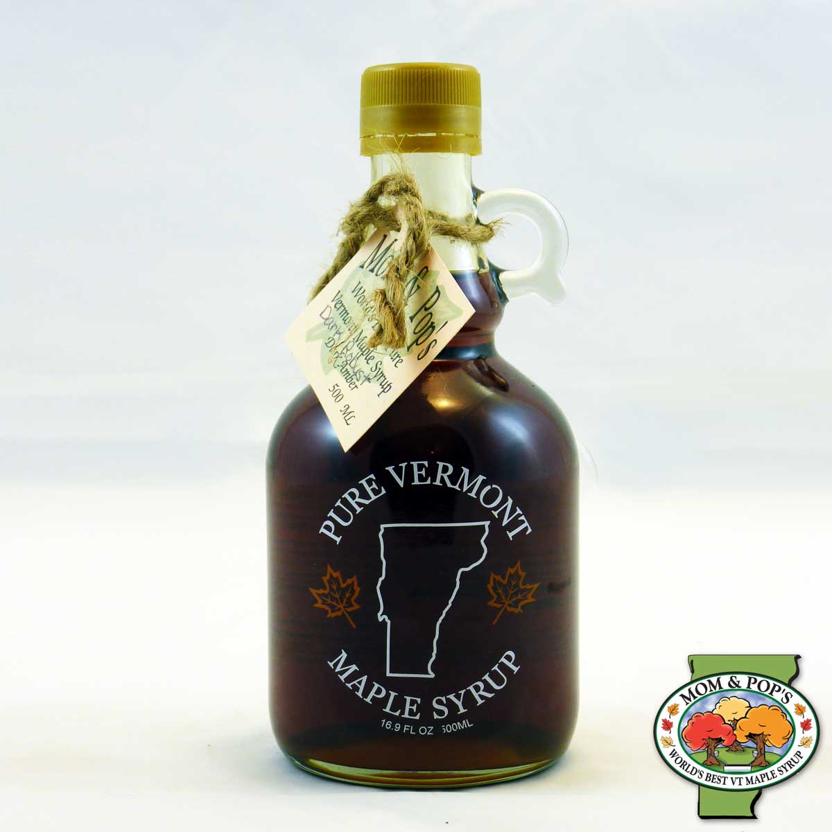 500 mL (16.9 oz) glass jug filled with Vermont maple syrup.
